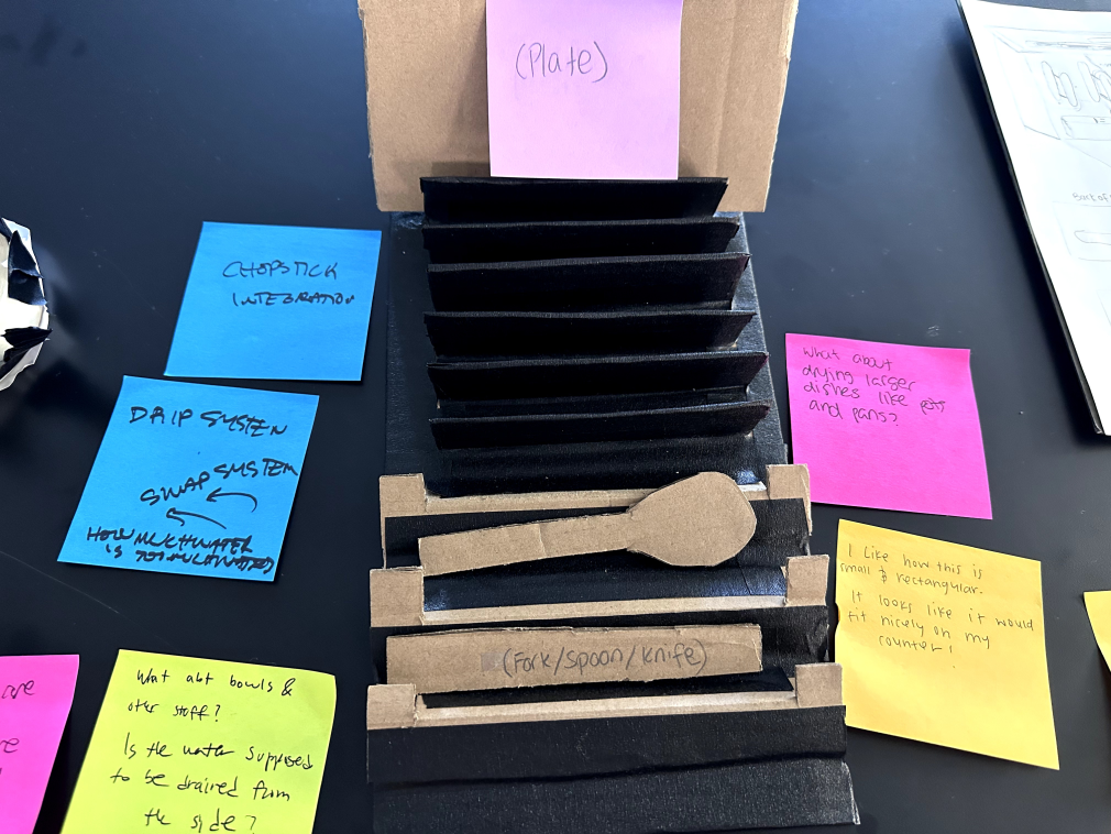 We started off by conducting user interviews, asking questions about their kitchen environment, dishwashing habits, and experience using their dishrack.